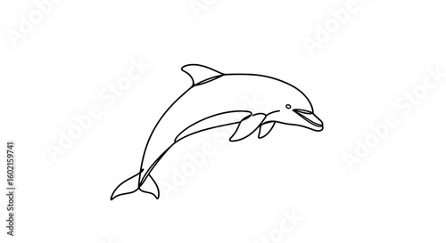 Fototapeta premium Minimalist dolphin line art drawing on white background