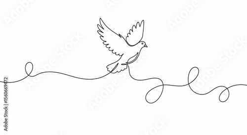Fototapeta premium Minimalist Dove in Flight: Single Line Art, Peace Symbol, Black Outline