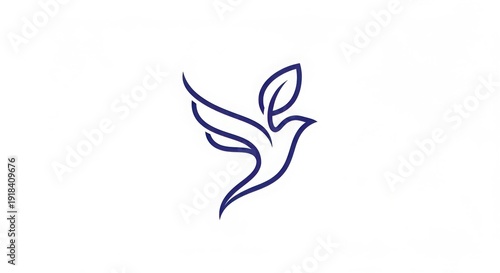 Obraz premium Minimalist Dove Logo Design with Leaf, Simple Bird Icon, Blue Line Art on White