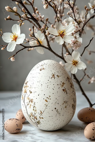 © Kiatisak78, Obraz premium Minimalist Dragon Easter Design with Simple Floral Arrangement and Decorative Egg