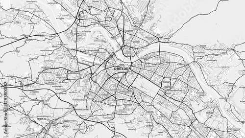 © Knut Hebstreit, Naklejka premium Minimalist Dresden Street Map with Labels and Neighborhoods