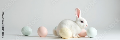 Obraz premium Minimalist Easter Delight: Cute Bunny with Pastel Eggs