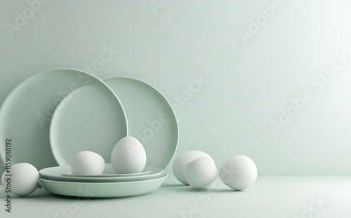 © Tanish, Fototapeta premium Minimalist Easter-themed product display, teal background