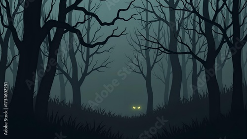 Obraz premium Minimalist Eerie Woodland Silhouette with Glowing Eyes
