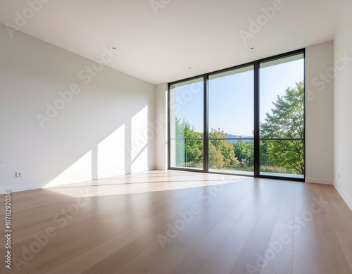 Obraz premium Minimalist Empty Room with Large Window and Natural Sunlight