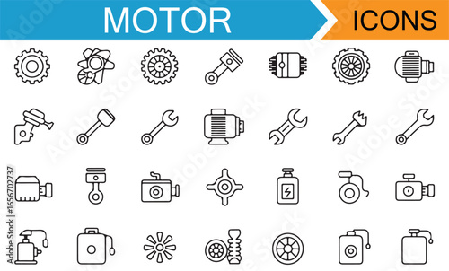 © R Hasan, Naklejka premium Minimalist Engine and Battery Icons for Mechanical Engineering and Repair