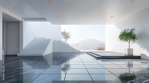 Obraz premium Minimalist entrance hall with geometric flooring and clean wall space