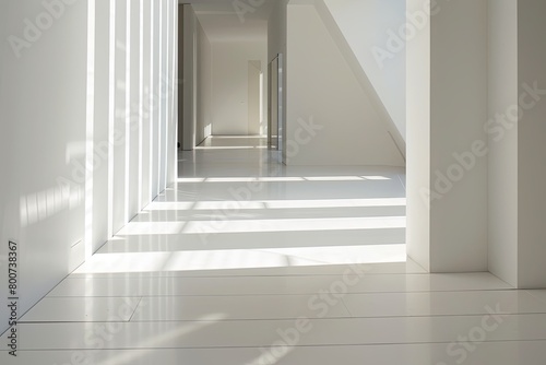 Obraz premium Minimalist Entryway: The Art of Light and Shadow in White Modern Interior Space