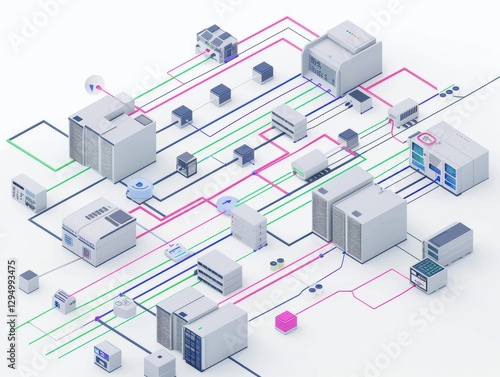 Fototapeta premium Minimalist ERP diagram on white colored lines show data flow between...
