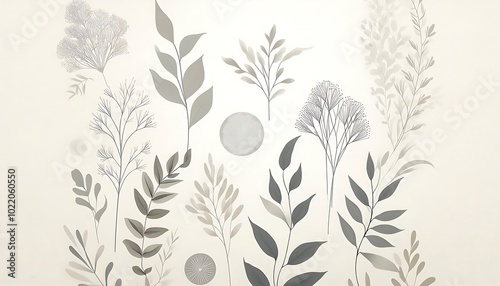 © Oxy Maru, Fototapeta premium minimalist fabric background with subtle botanical silhouettes in neutral shades like grey, white, and light beige,generative ai