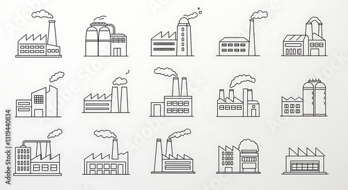 Fototapeta premium Minimalist Factory Icons - Industrial Activity - Suitable for infographic,...