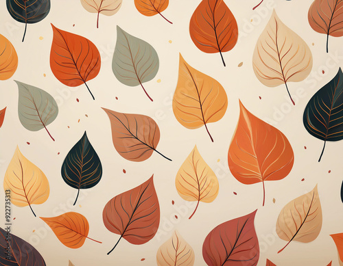 Obraz premium Minimalist Falling Leaves Pattern Autumn Hues on Neutral Background Design