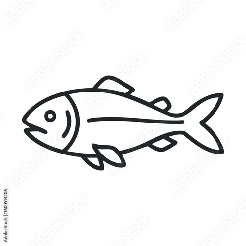 Fototapeta premium Minimalist fish icon in black outline on white background