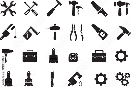 © Arya, Obraz premium Minimalist Flat Tool Icon Set in Solid Black