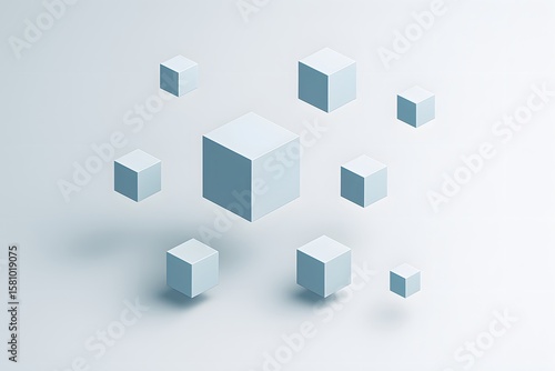 © Lukas, Obraz premium Minimalist Floating 3D Cubes on Light Background