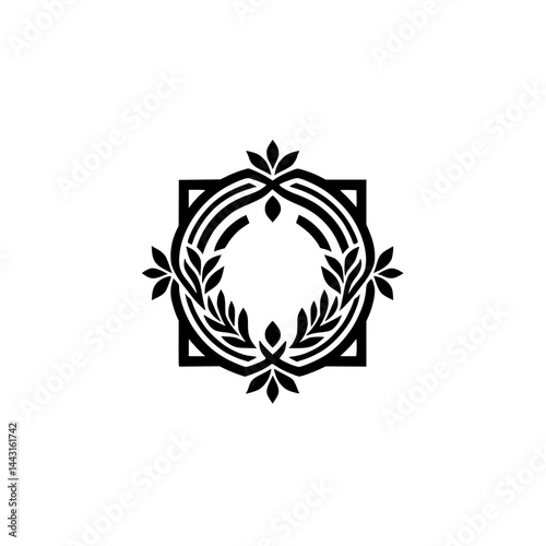 Fototapeta premium Minimalist Floral Emblem: Geometric Black and White Design for Branding