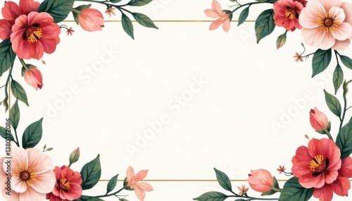 © Prasert, Fototapeta premium Minimalist floral frame border, large blank center , design, leaves