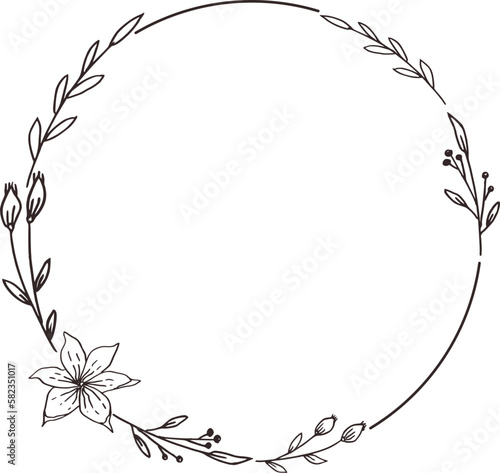 © Ymz_Design, Obraz premium Minimalist floral frame with hand drawn leaf and flower simple floral border