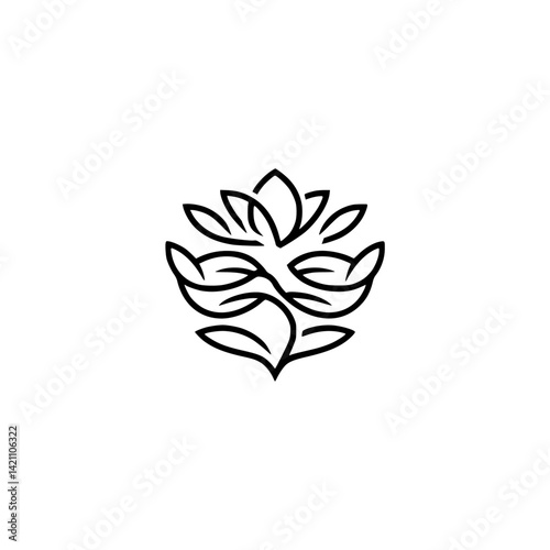 Obraz premium Minimalist Floral Logo Design, Black Lines on Creamy Background
