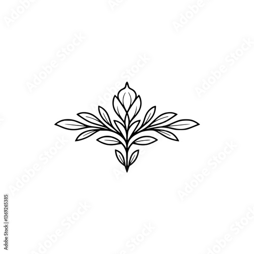 Fototapeta premium Minimalist Floral Ornament, Black on White, Elegant Design