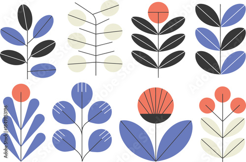 Fototapeta premium Minimalist Floral Patterns with Leaves and Flowers