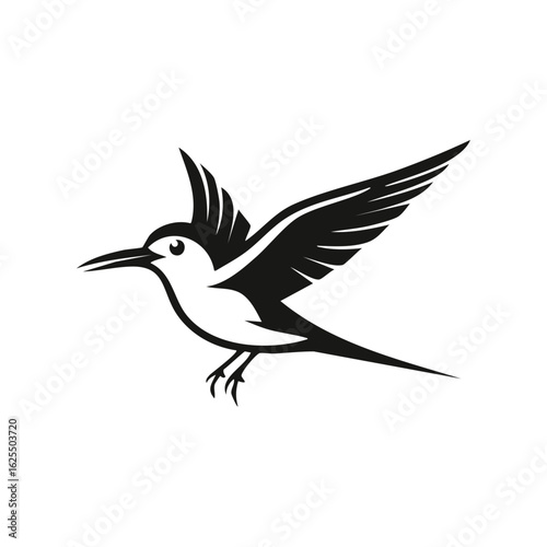 Obraz premium Minimalist flying bird logo with spread wings black and white graphic icon