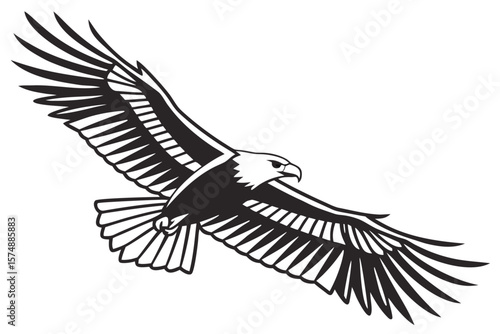 © ISMILE, Fototapeta premium Minimalist flying eagle silhouette in black and yellow