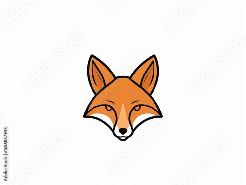 Fototapeta premium Minimalist fox logo in flat vector style, stylized fox face with geometric shapes, clean symmetrical design, bold outlines, modern branding icon on white