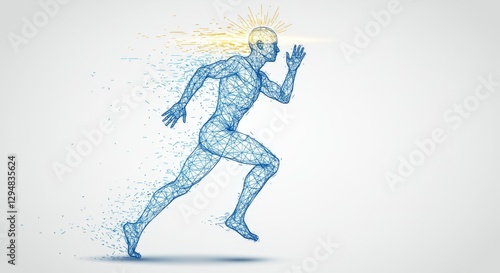 Fototapeta premium Minimalist Futuristic Artwork of a Runner as a Wireframe Polygon Mesh
