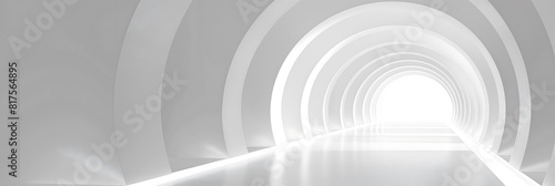 Naklejka premium Minimalist futuristic white tunnel with glowing arches and smooth surfaces