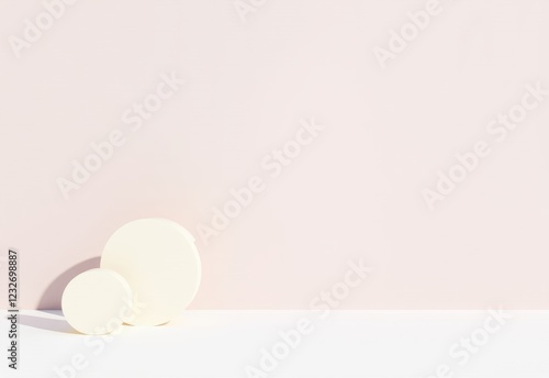 Fototapeta premium Minimalist geometric object in soft pastel tones, casting a shadow against a...