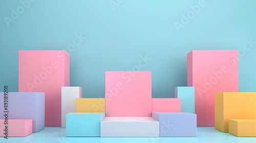Obraz premium Minimalist Geometric Pastel Cube Blocks in 3D Abstract Composition