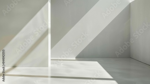 Fototapeta premium Minimalist Geometry, Sharp Shadow and Vertical Line on Pristine White Surface