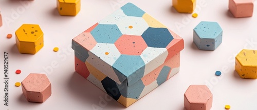 © Media Srock, Obraz premium Minimalist gift box with a geometric leaf pattern