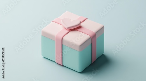 © Media Srock, Obraz premium Minimalist Gift Box with Pink Ribbon on Pastel Green Background