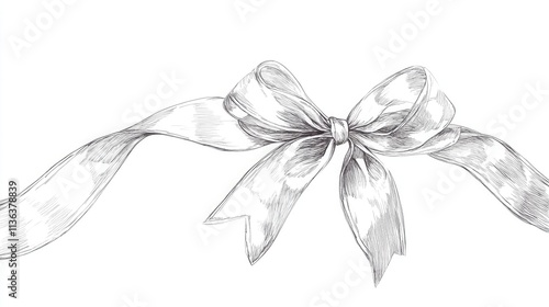 © Sirinya, Naklejka premium Minimalist gift ribbon line art with continuous sketch design, ideal for invitations or greeting cards, set against a smooth white surface.
