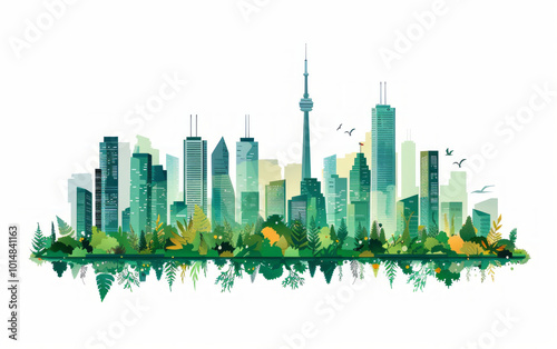 © 宁 王, Fototapeta premium Minimalist graphic illustration of city and building Outlines