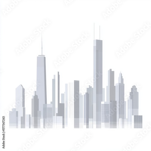 Fototapeta premium Minimalist gray city skyline illustration with tall buildings and abstract...