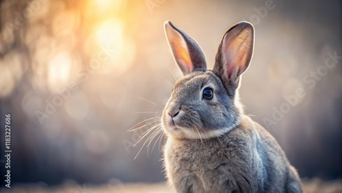 © Danicha, Fototapeta premium Minimalist Gray Rabbit - Elegant Studio Portrait