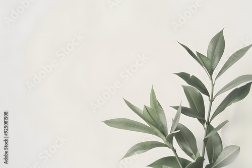 Fototapeta premium Minimalist Green Leaf Branch on White Background