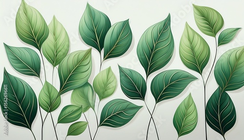 Obraz premium Minimalist green leaves pattern on white background, clean design-