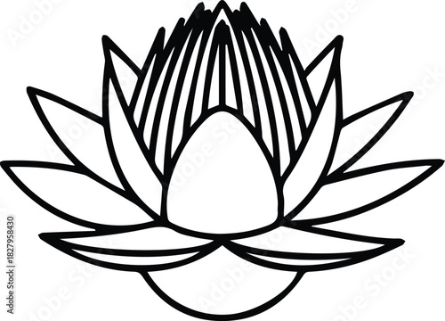 Fototapeta premium Minimalist hand drawn lotus flower outline icon vector