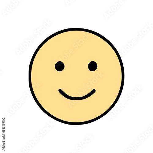 Fototapeta premium Minimalist happy face emoji illustration with yellow circular shape and black outline in hand drawn vector cartoon design