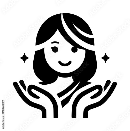 © mdjobayerhosen, Obraz premium Minimalist Happy Woman Holding Hands Vector Logo
