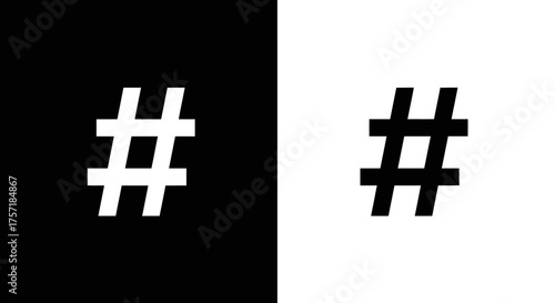 Fototapeta premium Minimalist Hashtag Symbol Vector Icon in Black and White Modern Geometric Style for Social Media