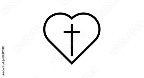 Obraz premium Minimalist heart outline with cross symbol in center