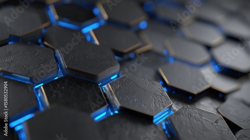 © Ailee Tian, Obraz premium Minimalist hexagonal pattern background with subtle blue energy glow. 4