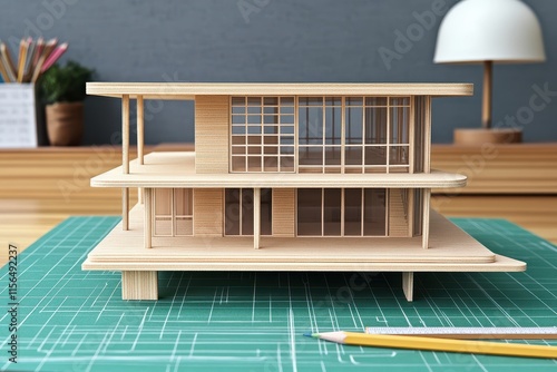 © Koon, Fototapeta premium Minimalist home architecture design model on a blueprint