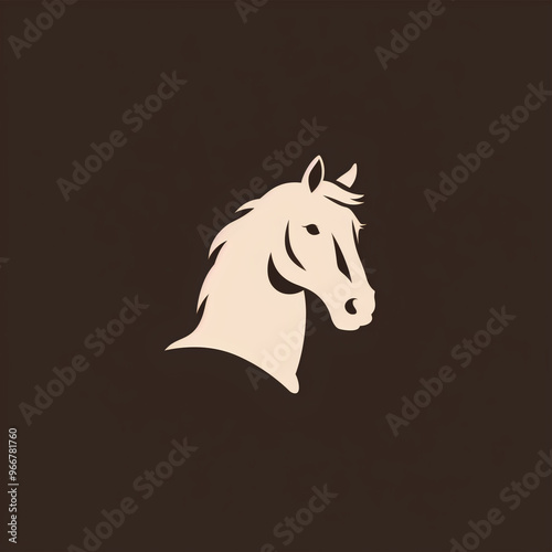 © WarriorsTribe, Obraz premium Minimalist horse head logo in beige and brown