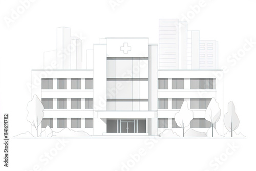 Obraz premium Minimalist hospital building with simple geometry and monochrome design